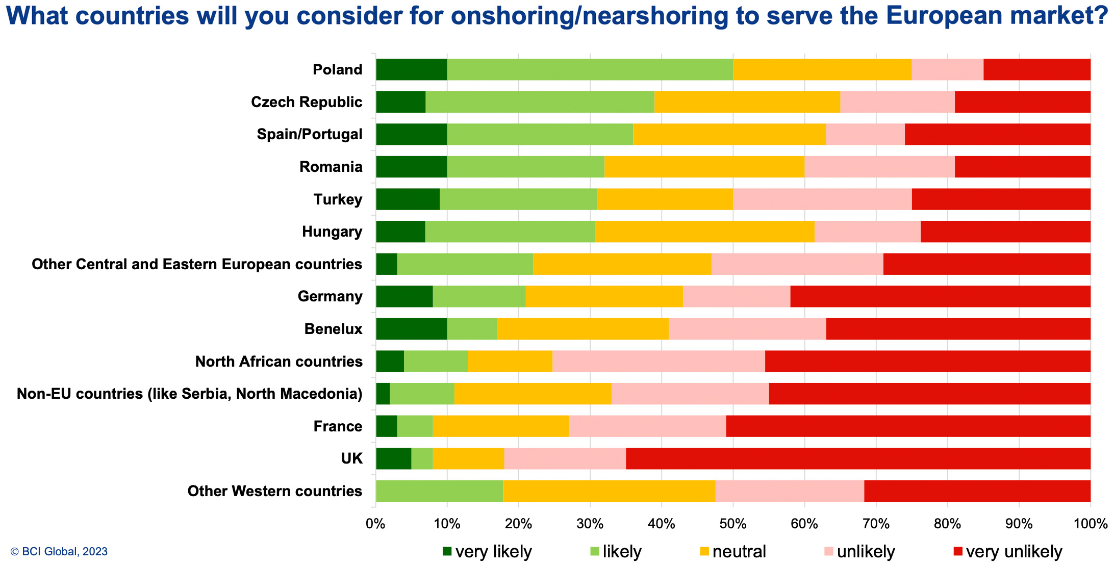 Kijkend naar Europa zijn het vooral de landen met lagere lonen waar bedrijven naar uitwijken. “De komende jaren zijn vooral Polen, Tsjechië, Roemenië en Hongarije favoriete nearshoring-locaties. Maar Spanje, Portugal en ook Turkije zijn sterk in opkomst”, zegt René Buck, directeur van Buck Consultants International.