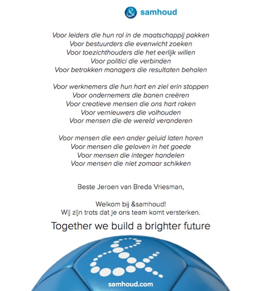 Het bestuur van consultancybureau &samhoud is versterkt met voormalig Achmea bestuurder Jeroen van Breda Vriesman, die is aangesteld als Entrepreneur. Ondanks een nog lopende OM fraudezaak rondom Achmea Health Centers en de vermeende betrokkenheid van Van Breda Vriesman in die kwestie, kreeg de nieuwe bestuurder bij zijn nieuwe werkgever een warm welkom.