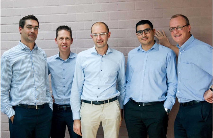 Vlnr: Reinold Vanhevel, Peter Knaepkens, Niki Serruys, Moustapha Kharbouch en Stephan Podevyn.