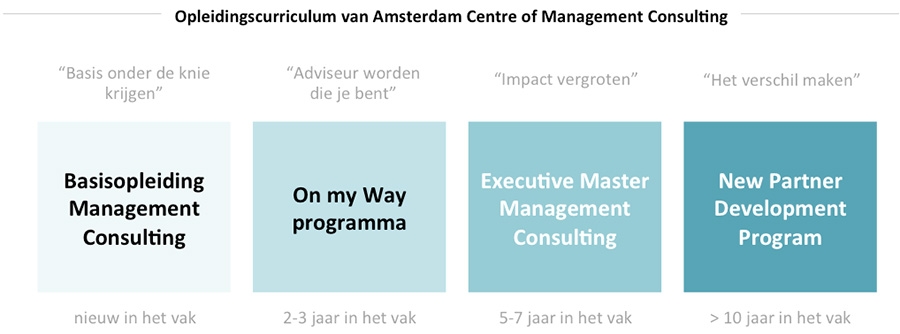Dit jaar viert het Amsterdam Centre of Management Consulting een bijzondere mijlpaal – in oktober van dit jaar start de 25ste lichting van zijn ‘Executive Master Management Consulting’ leergang. Om dit heugelijke feit te vieren zullen 25 adviseurs van de komende lichting een compleet vernieuwd curriculum voorgeschoteld krijgen, dat hen zal klaarstomen voor een toekomst in consultancy. Opvallend, en volgens de opleidingsinstelling een primeur, is het feit dat de consultants voor de leergang niet hoeven te betalen voor hun deelname, aangezien ze gedurende het volgen van het traject de opleidingskosten zelf terugverdienen.