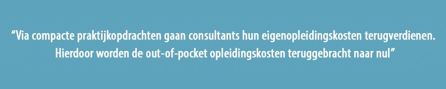 Deze elementen werden vervolgens uitgewerkt en verankerd in een aanpak voor opleidingen, met als resultaat een concept dat in de ogen van Flikkema gerust “baanbrekend” genoemd mag worden binnen het onderwijsdomein. In de aanpak zijn de out-of-pocket opleidingskosten voor de leergang ‘Executive Master Management Consulting’ teruggebracht naar nul. Voor een programma dat bestaat uit een uitgebreid opleidingstraject, waaronder sessies op A-level locaties als Duin & Kruidberg en ondersteund door executive docenten als de professoren Frank Kwakman en Steven ten Have, is de eerste vraag die rijst, hoe kan dat? “Het is eigenlijk heel simpel”, zegt Flikkema: “Consultants gaan via compacte praktijkopdrachten (twee tot drie weken, red.) en doorontwikkeld kennisleiderschap hun eigen opleidingskosten terugverdienen. De inkomsten die daar uit voortvloeien worden gebruikt om de opleiding te bekostigen.” En als er meer inkomsten gegenereerd worden, dan vloeien die in de kas van het bureau of de deelnemende professional. “Wij hebben geen winstoogmerk en gebruiken alle revenuen boven break-even voor het financieren van onderzoeksprojecten ten behoeve van de ontwikkeling van het vak.”