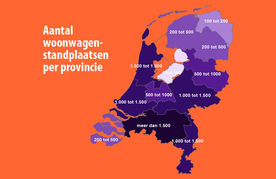De provincie Brabant is met meer dan 1.500 woonwagenstandplaatsen en woonwagencentra koploper in Nederland, terwijl Groningen het minste aantal 'kampen' huisvest. Een overzicht van het aantal woonwagenplaatsen per provincie: