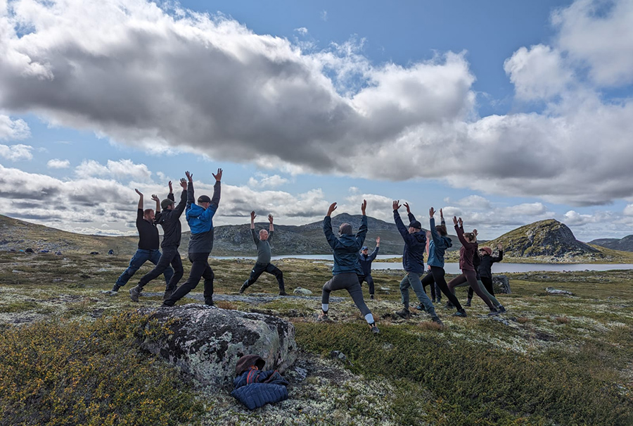 Eenmaal aangekomen in Hardangervidda kon het avontuur beginnen. “Onder het prachtige licht van de zonsopkomst begonnen we de dagen met een minicollege van gedragspsycholoog Bob”, vertelt Eva van der Wijngaard, adviseur Gedrag & Verandering bij YNNO. “Zo kregen we inzicht in hoe gedragsverandering en bijvoorbeeld het doorbreken van patronen en opbouwen van routines werken in het brein.”
